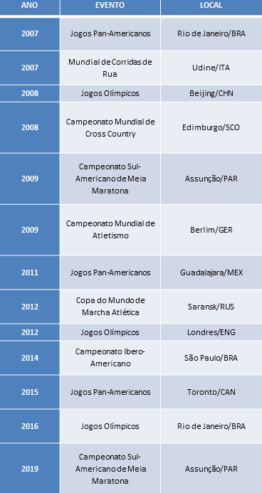 O quadro a seguir mostra as principais participações e conquistas do atleta.