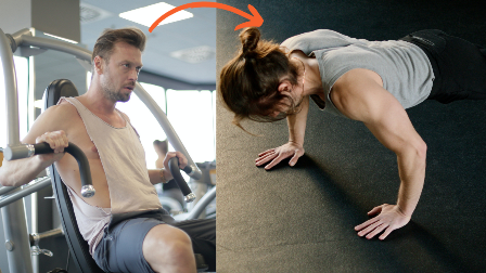 Por exemplo: se você tem o supino como exercício para a região peitoral, pode substituí-lo pelo apoio, ou flexão de braços; se você fortalece as panturrilhas no modo tradicional, pode substituir pelo modo do corpo inclinado à frente.