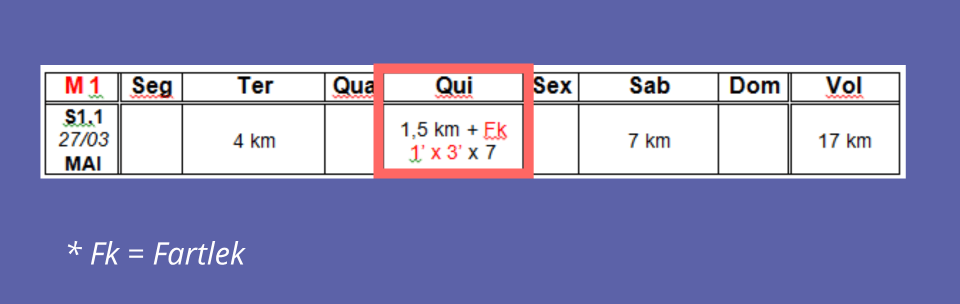 O Fartlek (Fk) é um método criado na Suécia que mistura variações de intensidade. É extremamente versátil e pode ser adaptado de várias formas ? mais adiante trarei um conteúdo exclusivo sobre ele.